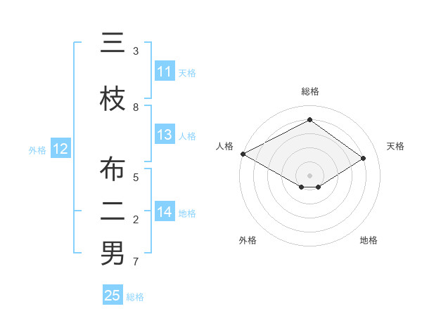 三枝 布二男さんを姓名の画数から五運を鑑定