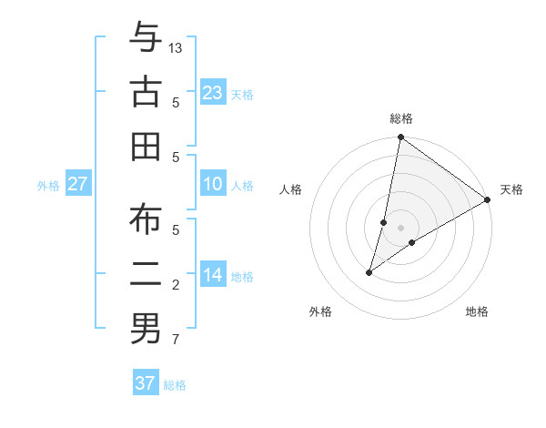 与古田 布二男さんを姓名の画数から五運を鑑定