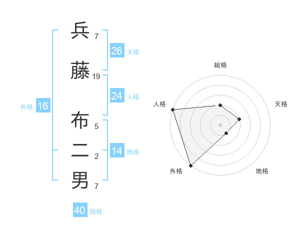 兵藤 布二男さんを姓名の画数から五運を鑑定