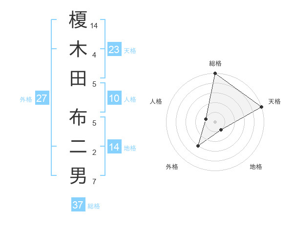 榎木田 布二男さんを姓名の画数から五運を鑑定