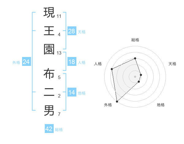 現王園 布二男さんを姓名の画数から五運を鑑定