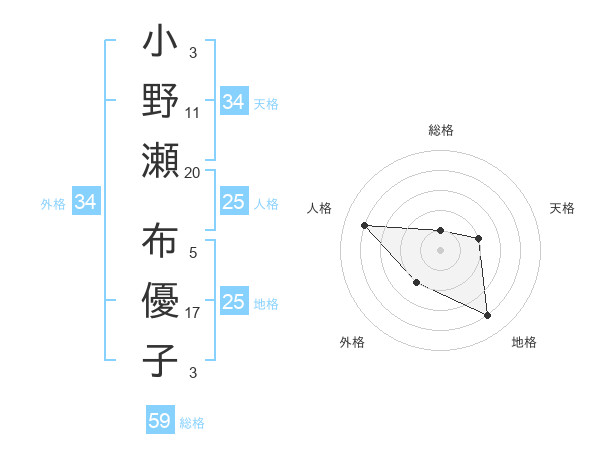 小野瀬 布優子さんを姓名の画数から五運を鑑定