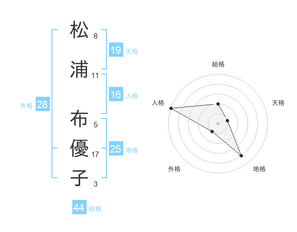 松浦 布優子さんを姓名の画数から五運を鑑定
