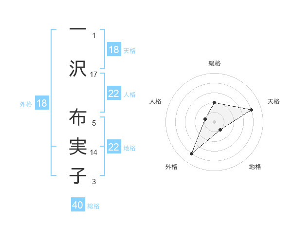 一沢 布実子さんを姓名の画数から五運を鑑定