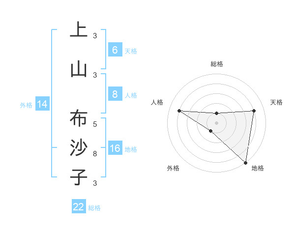 上山 布沙子さんを姓名の画数から五運を鑑定