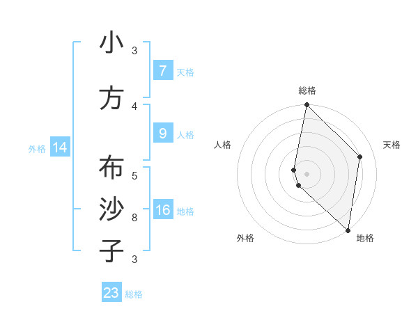 小方 布沙子さんを姓名の画数から五運を鑑定
