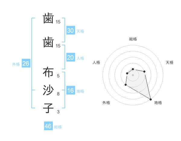 歯歯 布沙子さんの総格は46画の1点!