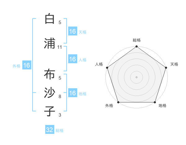 白浦 布沙子さんの天格は16画の5点!