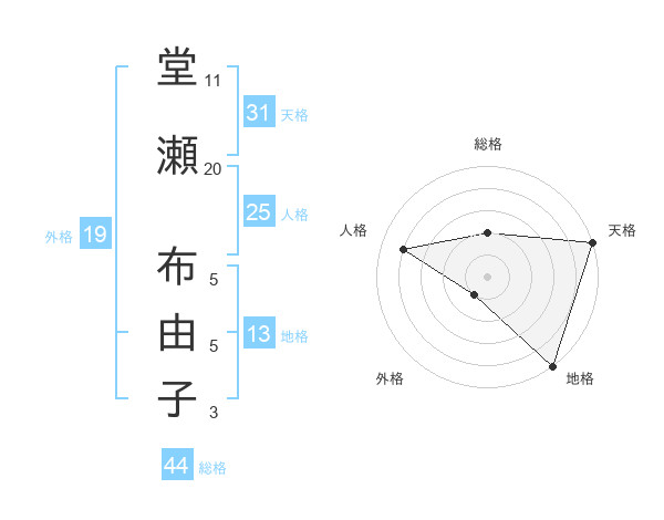 堂瀬 布由子さんを姓名の画数から五運を鑑定