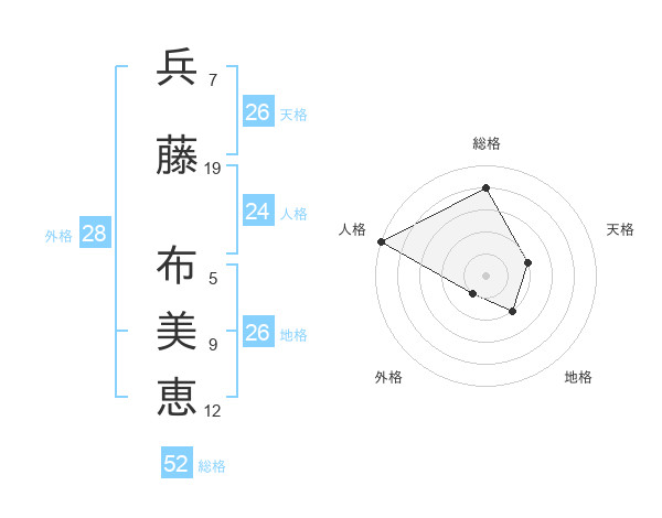 兵藤 布美恵さんの総格は52画の4点!