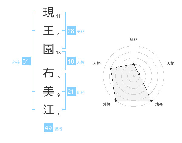 現王園 布美江さんを姓名の画数から五運を鑑定