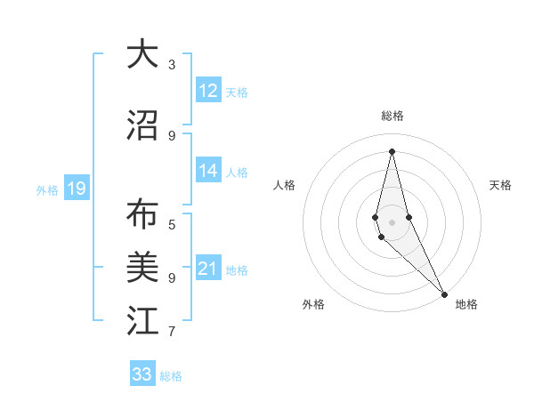 大沼 布美江さんの総格は33画の4点