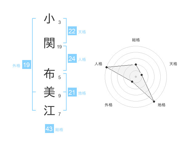 小関 布美江さんの総格は43画の2点!