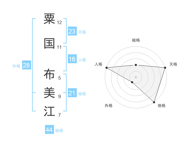 粟国 布美江さんの総格は44画の2点!