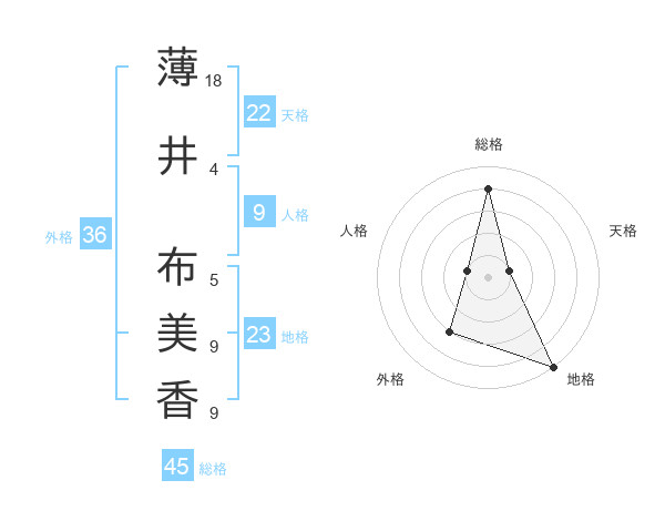 薄井 布美香さんを姓名の画数から五運を鑑定