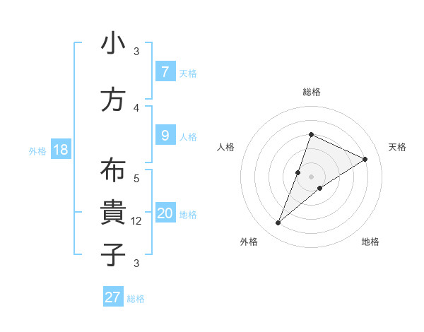 小方 布貴子さんの総格は27画の3点!