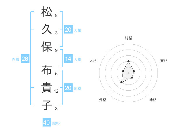 松久保 布貴子さんの総格は40画の2点!