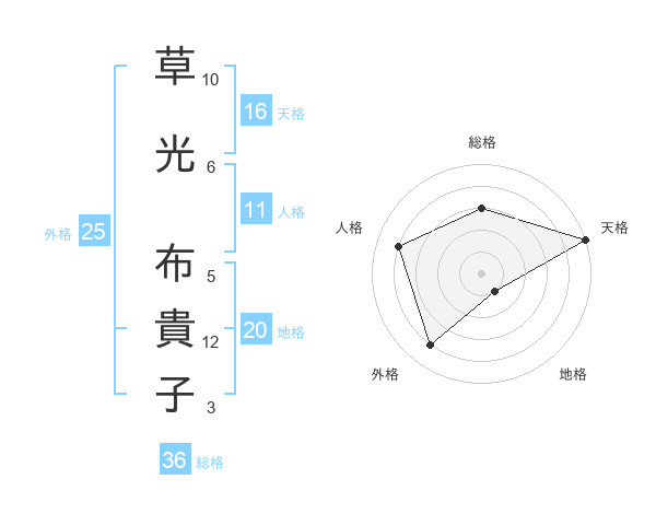 草光 布貴子さんを姓名の画数から五運を鑑定