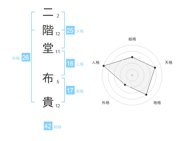 二階堂 布貴さんを姓名の画数から五運を鑑定