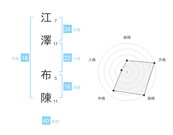江澤 布陳さんを姓名の画数から五運を鑑定