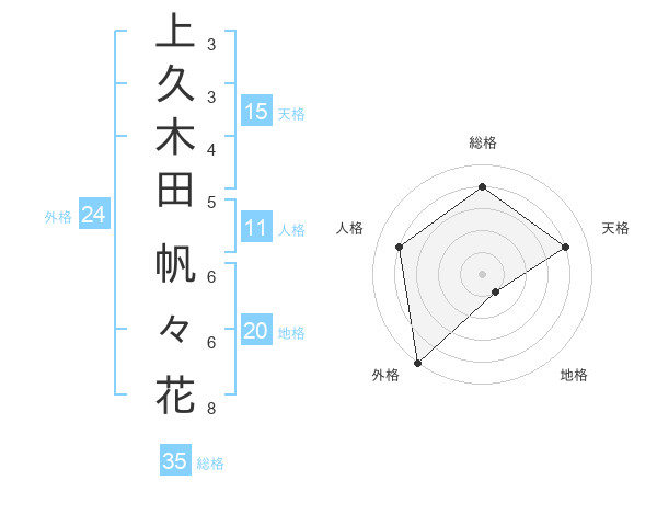上久木田 帆々花さんの総格は35画の4点