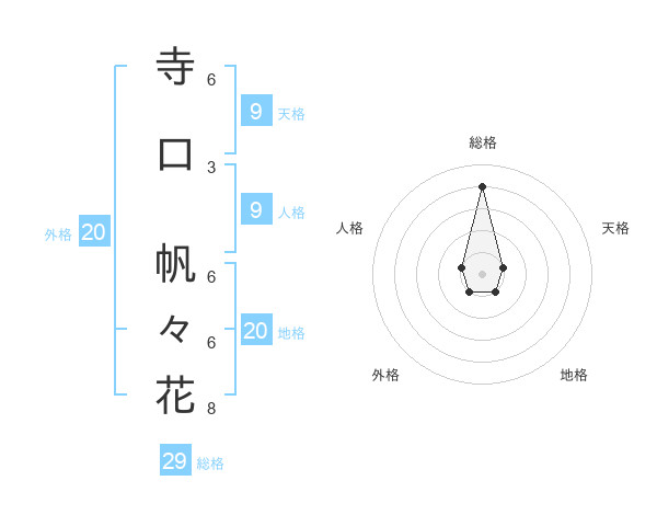 寺口 帆々花さんを姓名の画数から五運を鑑定