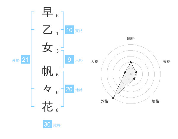 早乙女 帆々花さんを姓名の画数から五運を鑑定