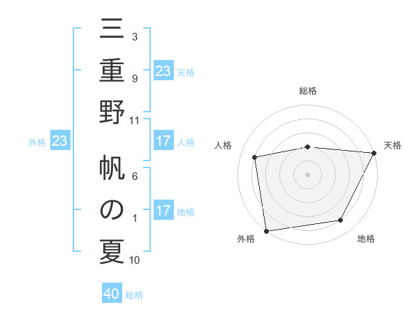 三重野 帆の夏さんの天格は23画の5点!