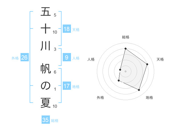 五十川 帆の夏さんを姓名の画数から五運を鑑定