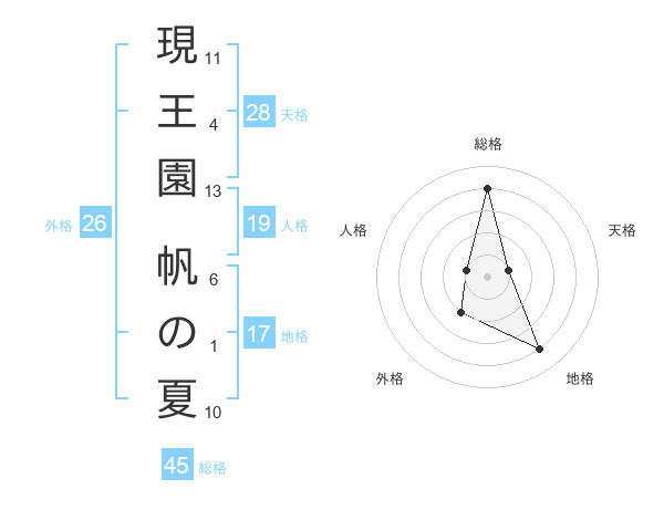 現王園 帆の夏さんを姓名の画数から五運を鑑定