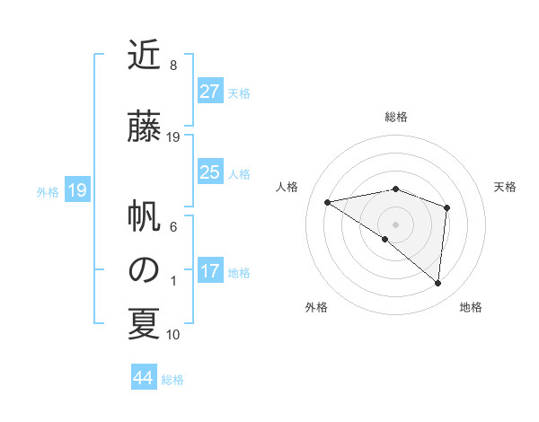 近藤 帆の夏さんを姓名の画数から五運を鑑定