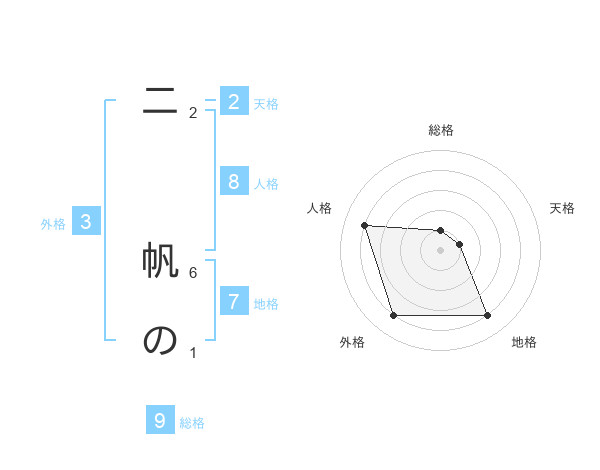 二 帆のさんの総格は9画の1点!