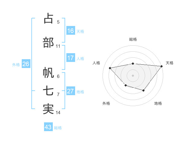 占部 帆七実さんを姓名の画数から五運を鑑定
