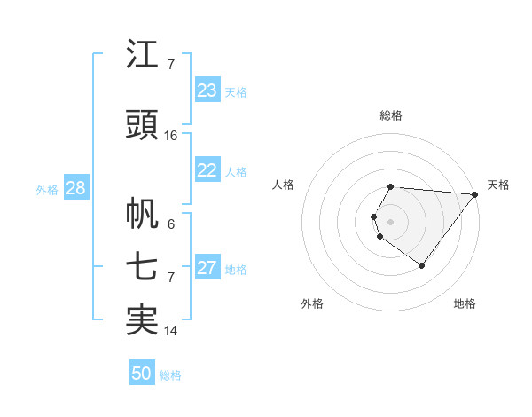 江頭 帆七実さんの総格は50画の2点!