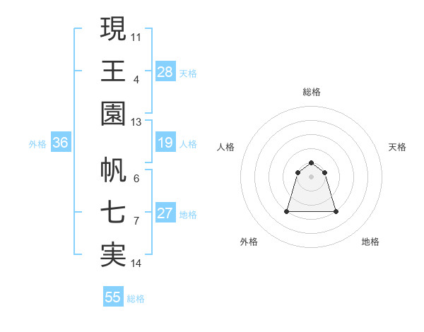 現王園 帆七実さんの総格は55画の1点!
