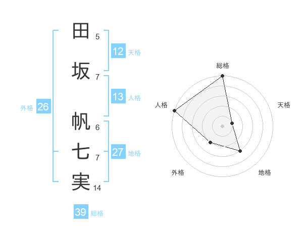 田坂 帆七実さんを姓名の画数から五運を鑑定
