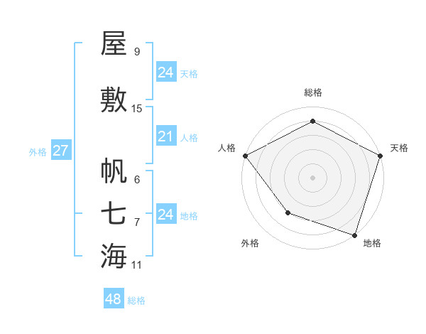 屋敷 帆七海さんの天格は24画の5点!