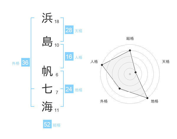 浜島 帆七海さんの総格は52画の4点