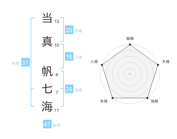 当真 帆七海さんを姓名の画数から五運を鑑定