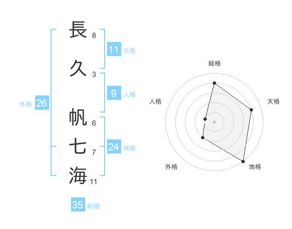長久 帆七海さんを姓名の画数から五運を鑑定