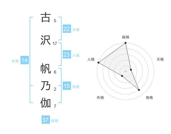 古沢 帆乃伽さんを姓名の画数から五運を鑑定