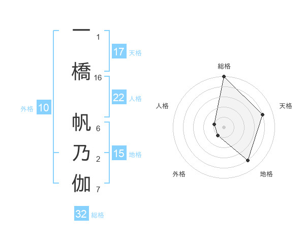 一橋 帆乃伽さんを姓名の画数から五運を鑑定