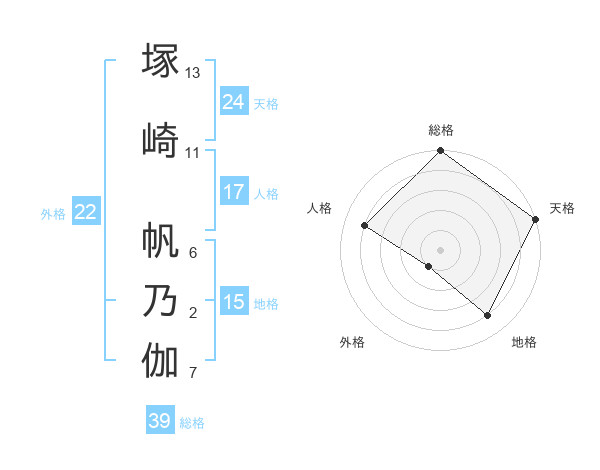 塚崎 帆乃伽さんを姓名の画数から五運を鑑定