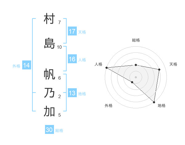 村島 帆乃加さんの天格は17画の4点!