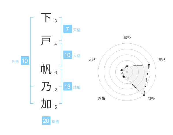 下戸 帆乃加さんの総格は20画の1点!