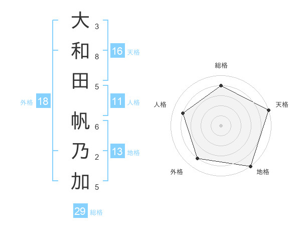 大和田 帆乃加さんを姓名の画数から五運を鑑定