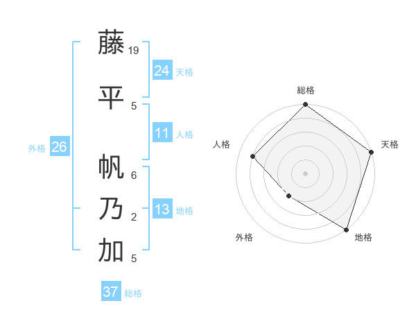 藤平 帆乃加さんの総格は37画の5点