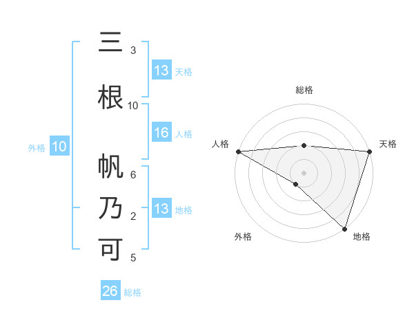 三根 帆乃可さんの天格は13画の5点!
