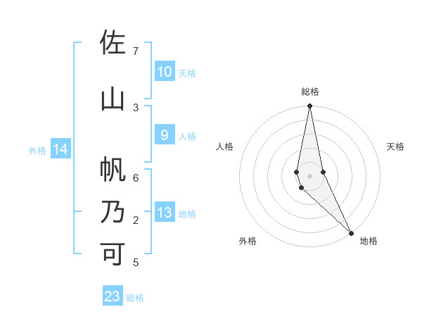 佐山 帆乃可さんの総格は23画の5点!