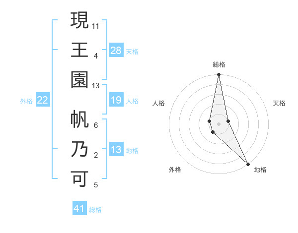 現王園 帆乃可さんを姓名の画数から五運を鑑定